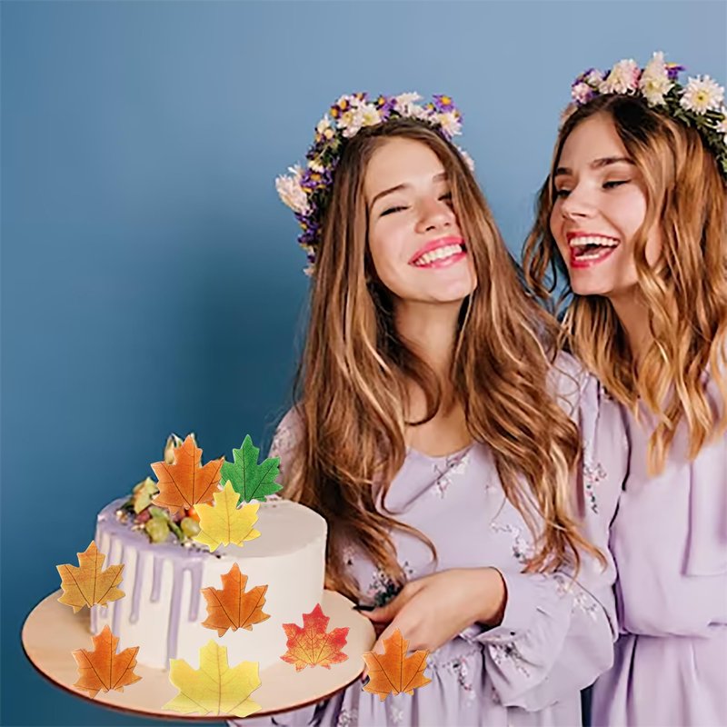 - Premium Material: These fall leaves are made of edible glutinous wafer paper, so there was no flavor, sweetness. It is completely edible but not delicious. Keep it in a cool place or refrigerate. they are very so safe to be suitable for cupcakes,cookies,cakes,fruits,cookies,ice cream and other desserts.