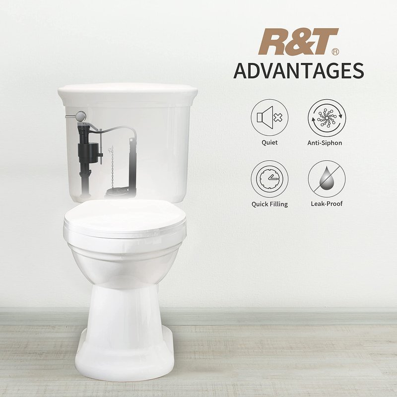 Designed to fix no/slow refilling, running, and noisy toilets, R&T A1320 Toilet Fill Valve is quieter than other fill valves, fits most 2-piece toilets of American standard, kohler, toto, etc.