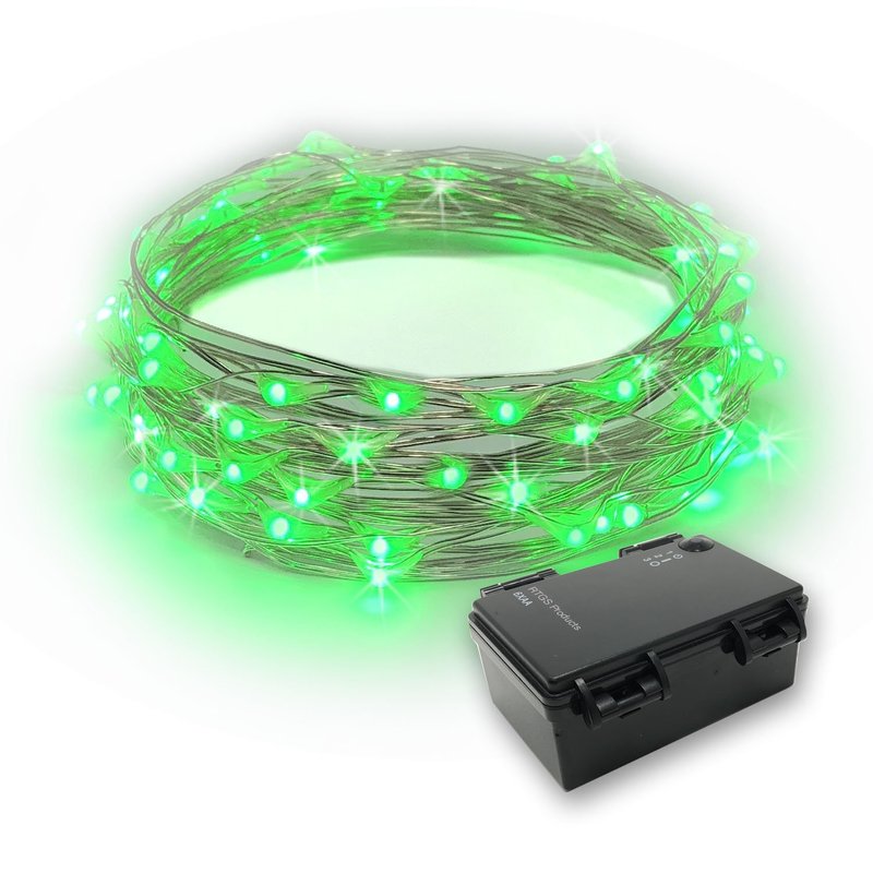 - Extra Luminous: 60 Super Bright Green Color LED String Lights on 20 feet long ultra thin silver color wire with 4 inches distance between LED bulbs. There is 12 inches clear cable between wire and battery box. Total String Length 21 Feet.