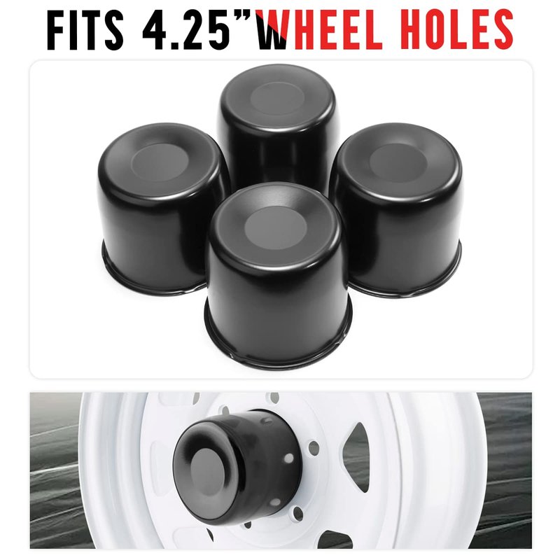 - Package Include - When You Purchase A Quantity Of 1, You Will Receive 4-Pack Carbon Steel Black trailer wheel center caps.