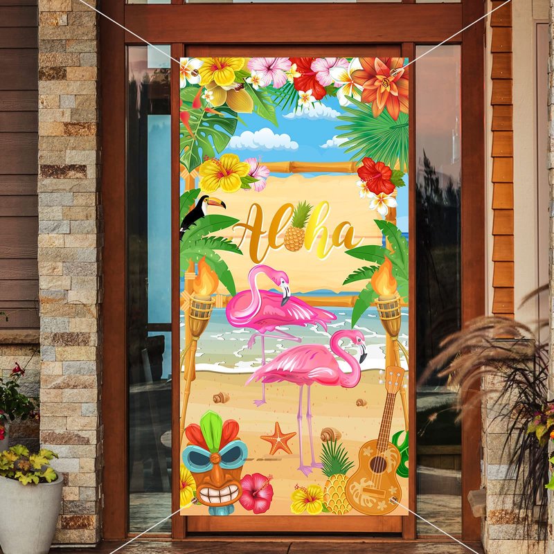 Rtteri Aloha Party Decorations Hawaiian Door Cover Sign Summer Luau Beach Supplies Party Door Banner Tropical Tiki Party Backdrop for Hawaiian Party Yard Birthday Accessory