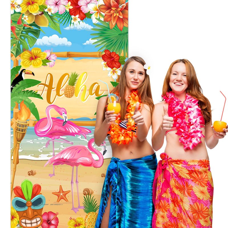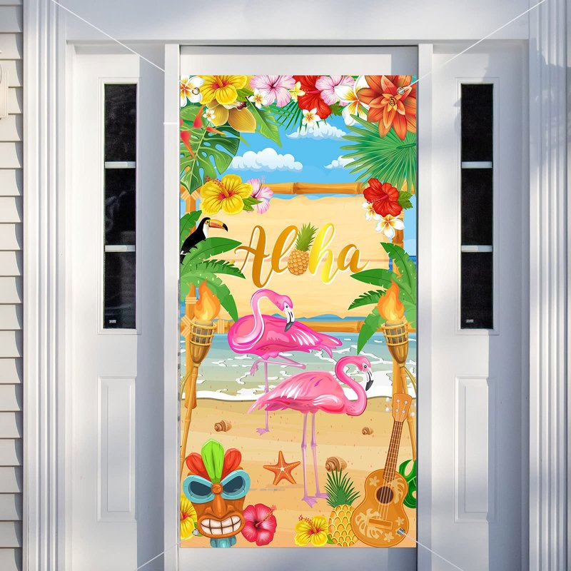 - Wide Application: our large Hawaiian decorations for women fit most doors, you can put them in the front door, bedroom door, bathroom door, classroom, garage, office or any indoor, outdoor door, you also could use these themed door covers as the background of the party photo booth, suitable for birthday party supplies, farmhouse decor, Christmas decorations