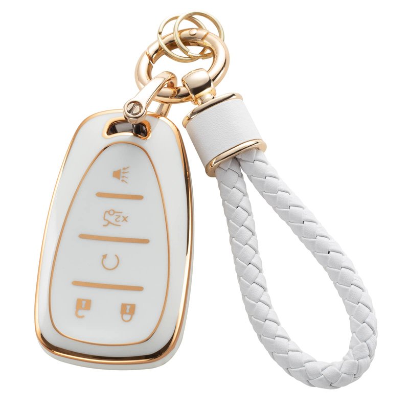 RUABIBAN for Chevy Key Fob Cover with Keychain, Soft TPU Key Case Protection Fit for Chevrolet Equinox Malibu Camaro Traverse