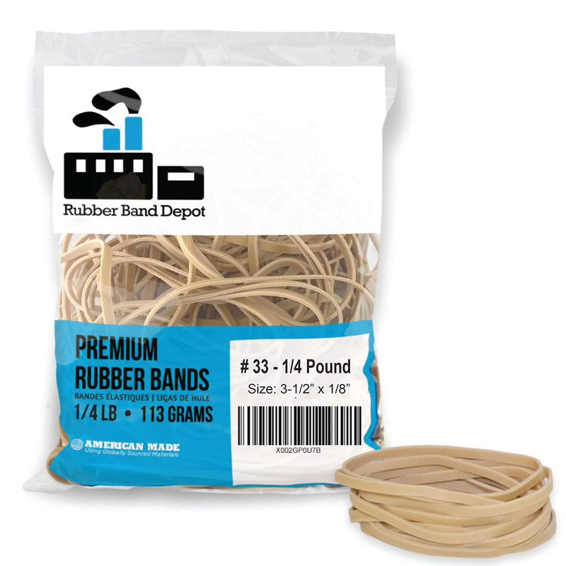 Rubber Bands, Rubber Band Depot, Size #33, Approximately 205 Rubber Bands Per Bag, Rubber Band Measurements: 3-1/2" x 1/8'' - 1/4 Pound