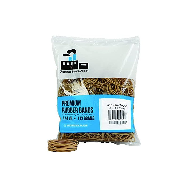 Rubber Bands, Size #16, Rubber Band Depot, Approximately 475 Rubber Bands Per Bag, Rubber Band Measurements: 2-1/2" x 1/16'' - 1/4 Pound Bag