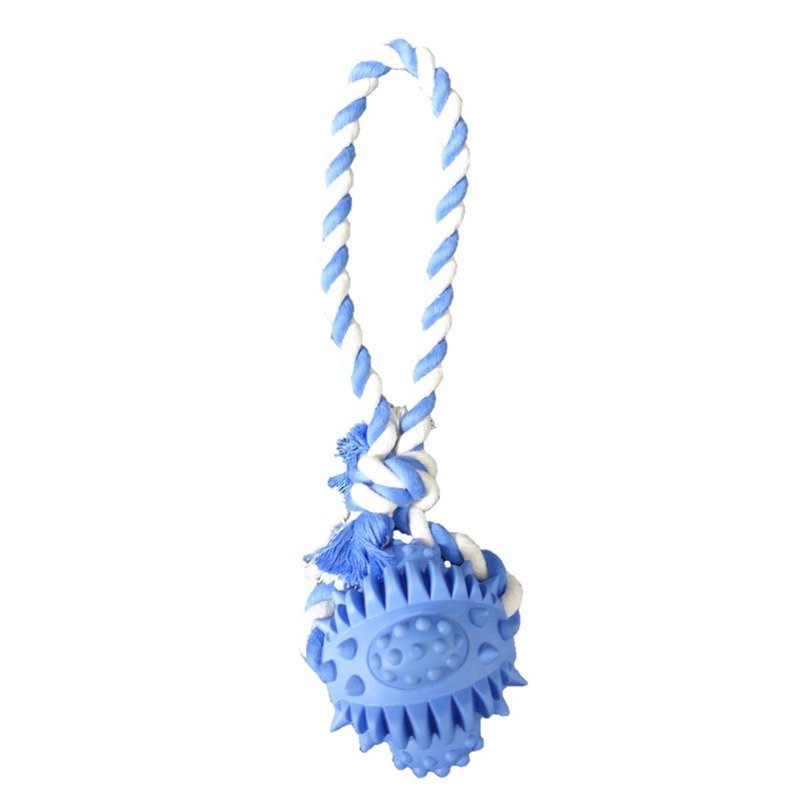 Rubber Dental Ball with Rope Dog Toy (Blue)
