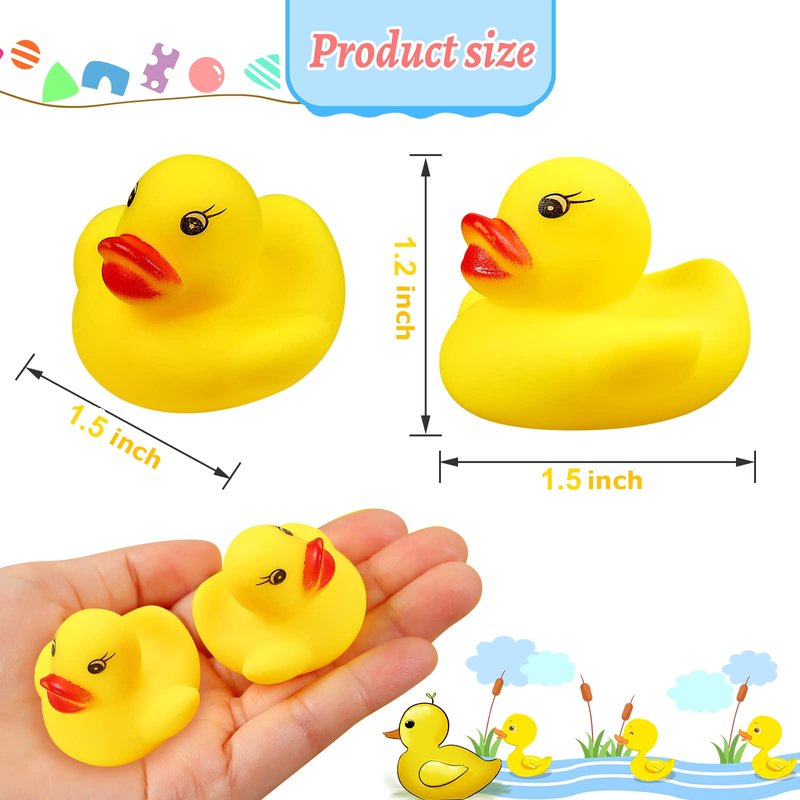- Fun Bath Toys: The little rubber ducks are cute and can float on the water. When you squeeze them, they will make funny sounds, adding great fun to the bath, so it is very suitable for shower or playing in bathtub. Also, the rubber duckies are safe for all children.