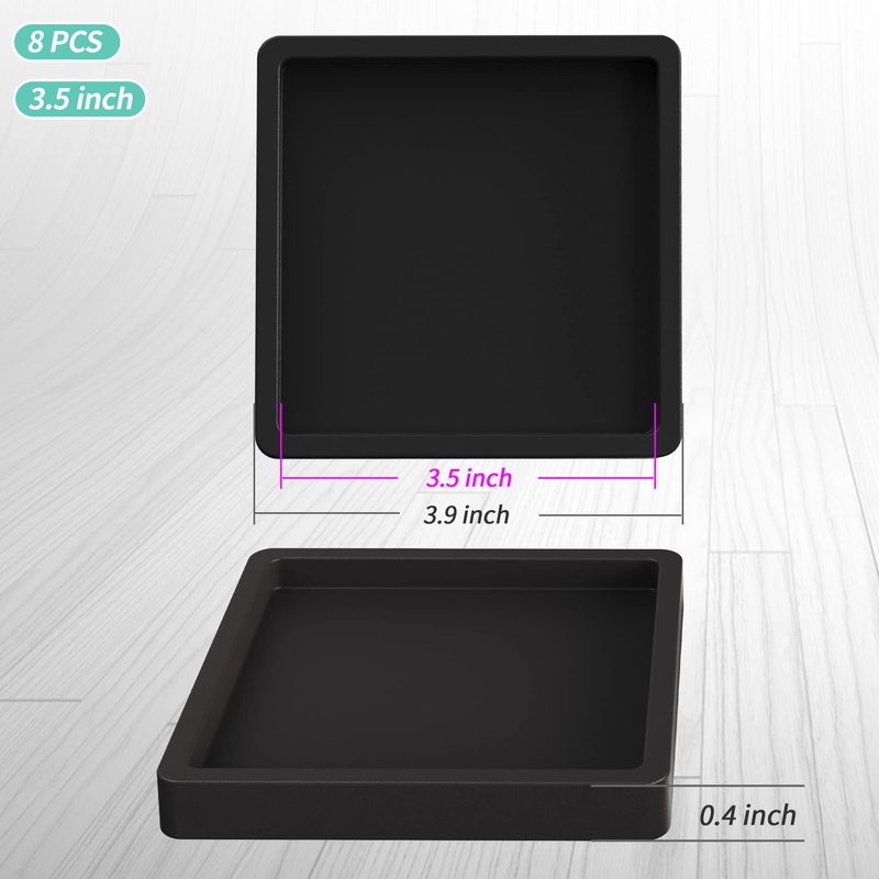 Rubber Furniture Cups Pads Non Slip 8 Pcs 3.5''Square Furniture Coasters Couch Bed Leg Protectors for Hardwood Floors