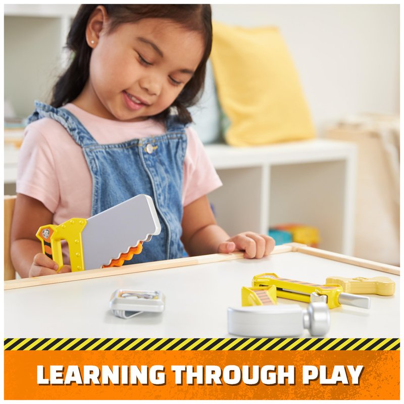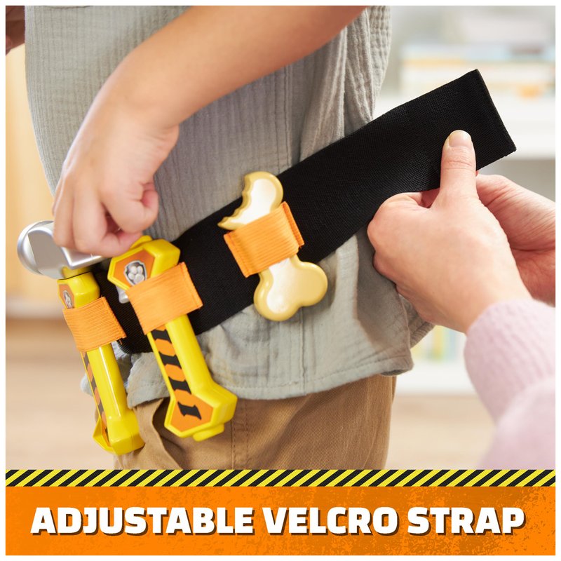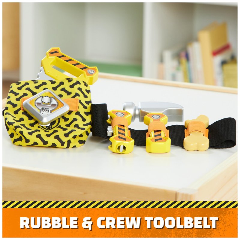 - 6-PIECE KIDS TOOL SET: Rubble’s Construction Tool Belt features construction toys like a toy hammer, an extendable screwdriver, a toy saw that clicks when used, a clip-on team badge and more
