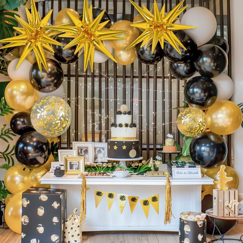 - 【Easy to Use】The Black Gold Balloon Garland Kit provides tools including balloon strips, ribbon, and glue dot to help you save time and effort and make balloon arches easier. After the confetti balloon is inflated, the confetti can be adhered to the side of the balloon by friction, which makes the balloon more beautiful.