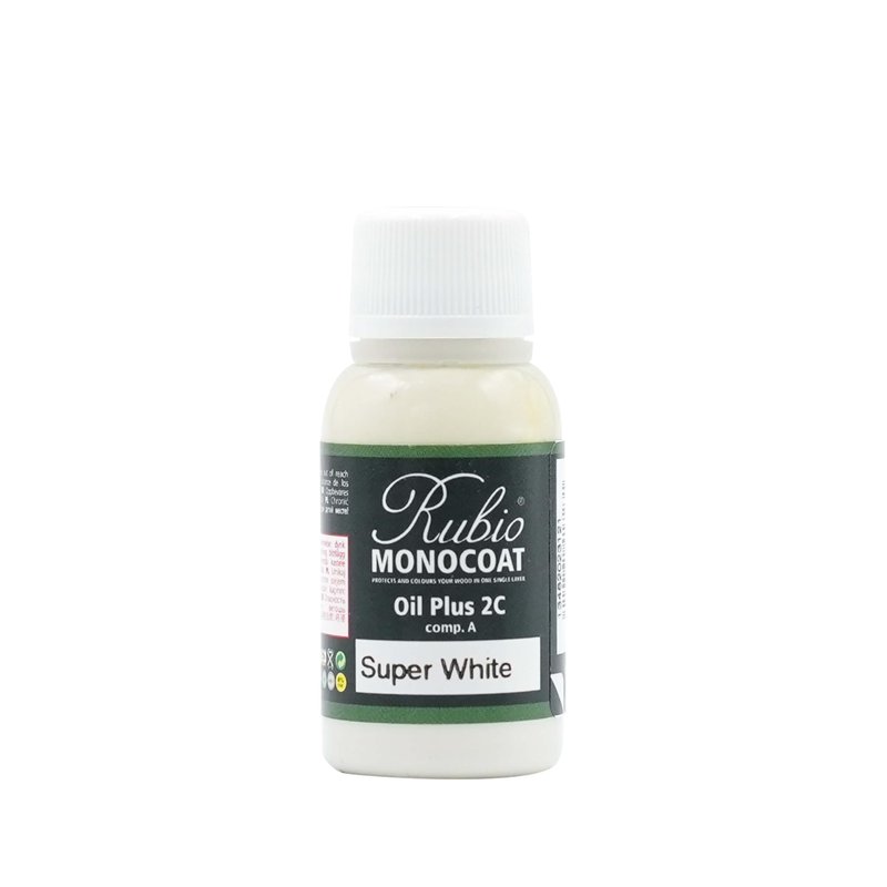 Rubio Monocoat Oil Plus Part A, 20 Milliliters, Super White, Interior Wood Stain and Finish, Food Safe, Easy One-Coat, Linseed Oil, Plant Based, VOC/Solvent Free, Furniture & Flooring Hardwax Oil