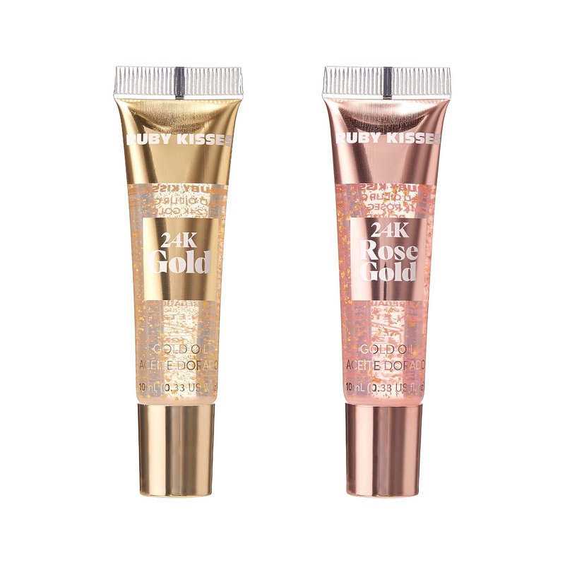 - You can have ultra glossy lip gloss without feeling sticky or tacky. The Ruby Kisses 24K Gold Oil Lip Gloss deposits shiny color and decadent moisture, while making your lips look plumper
