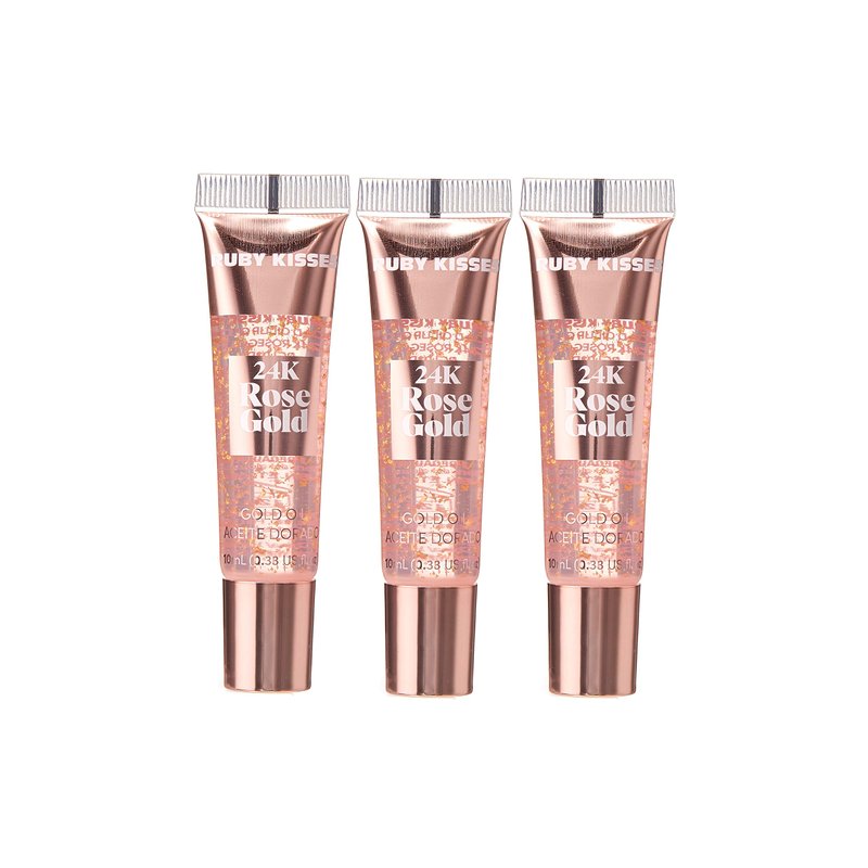 Ruby Kisses 24K Gold Oil Lip Gloss (3 Count, Rose Gold)