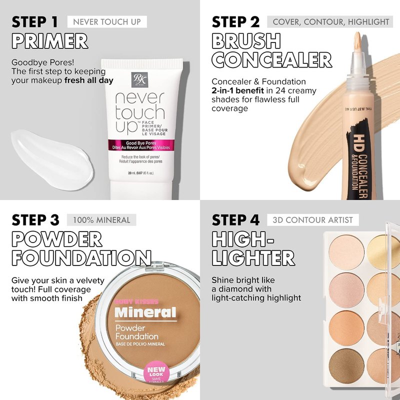 Ruby Kisses Flawless Finish with 3D Contour Powder Makeup Palette - Multiple Contouring Options, Easy Blending, Long-lasting formula, Sculpt &Highlighting, Professional finish (Light Medium)