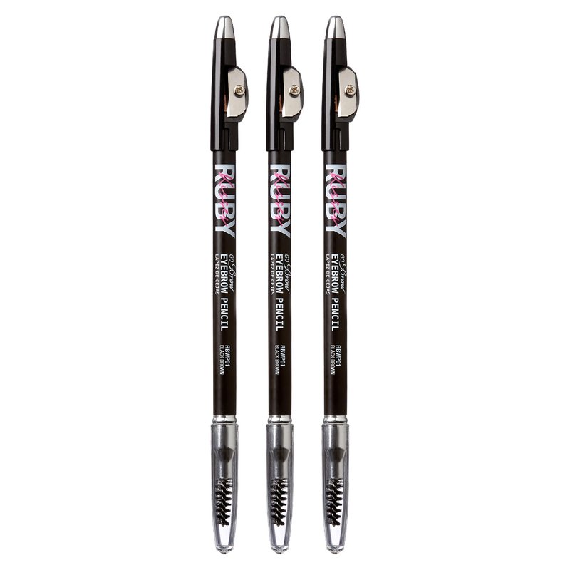 - Ruby Kisses Go Brow Pencil is a traditional wooden eyebrow pencil with a full-pigment, powder-like formula that helps you fill and define brows. The dual-sided eyebrow makeup tool features a custom spoolie end to allow you to blend the eyebrow color to a natural-looking finish