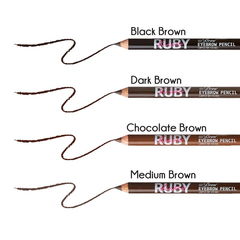 - Ruby Kisses Go Brow Pencil is a traditional wooden eyebrow pencil with a full-pigment, powder-like formula that helps you fill and define brows. The dual-sided eyebrow makeup tool features a custom spoolie end to allow you to blend the eyebrow color to a natural-looking finish