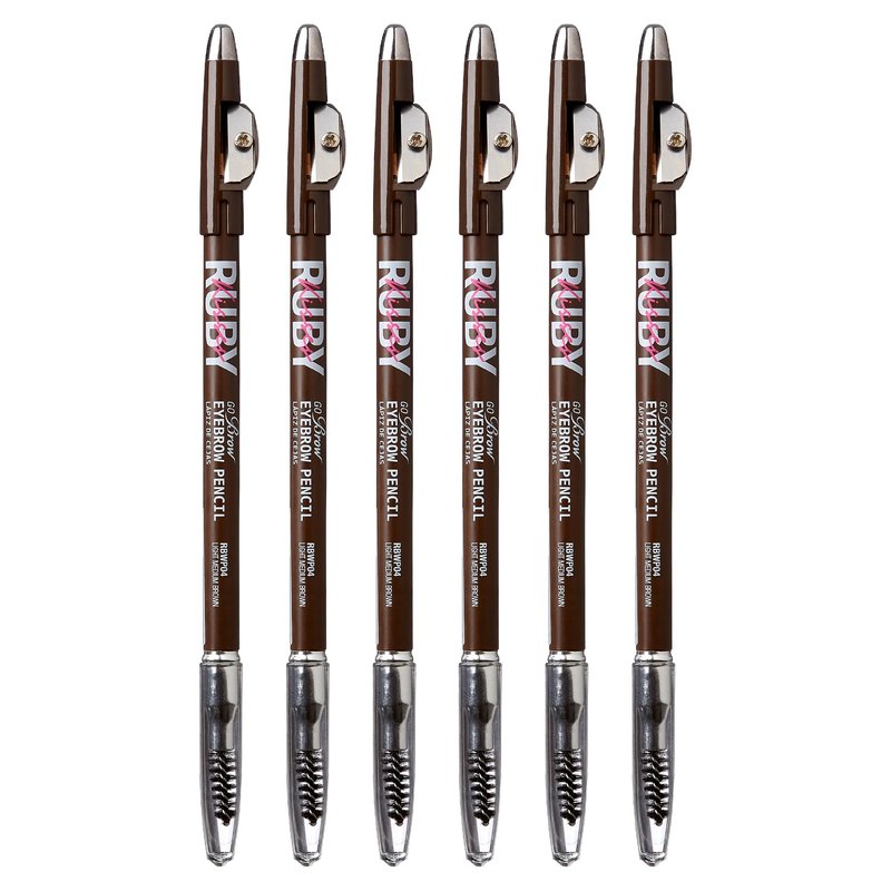 Ruby Kisses GoBrow Eyebrow Pencil, Sharpenable, Longwear, Long Lasting Eyebrow Wooden Pencil for Natural-Looking Brows 6 PACK (Medium Brown)