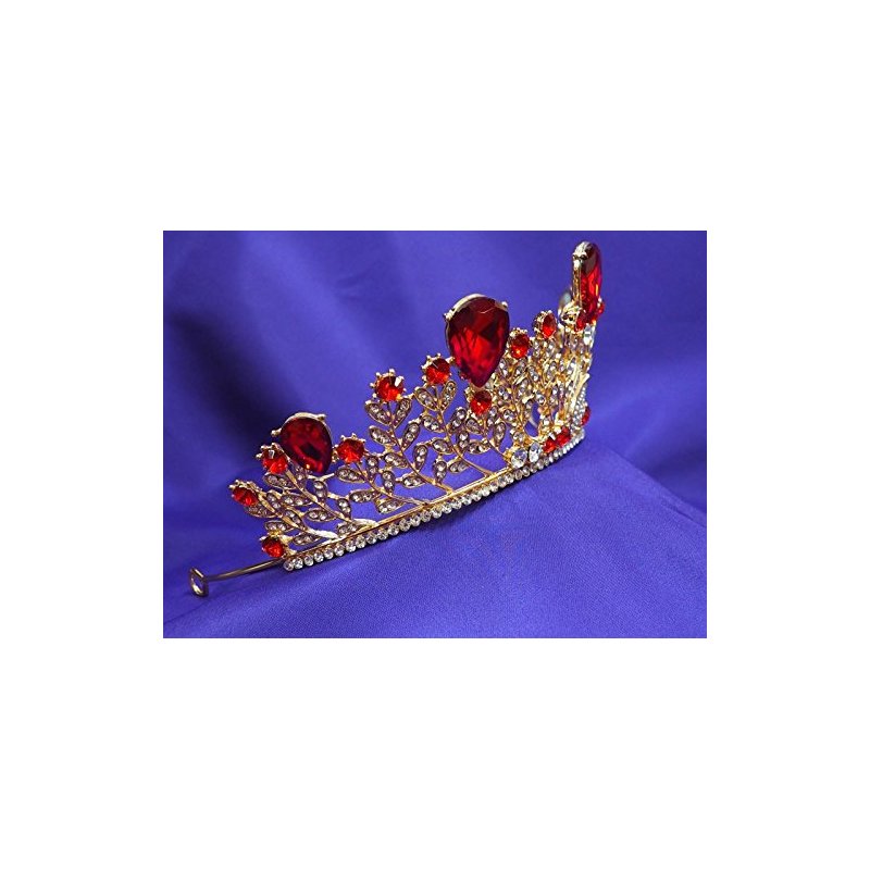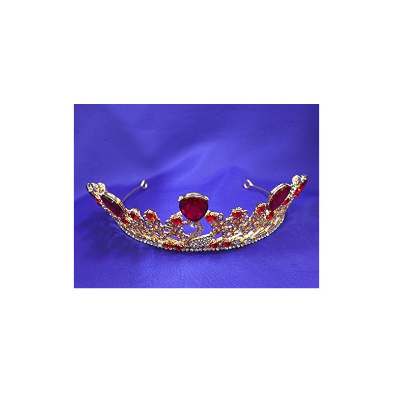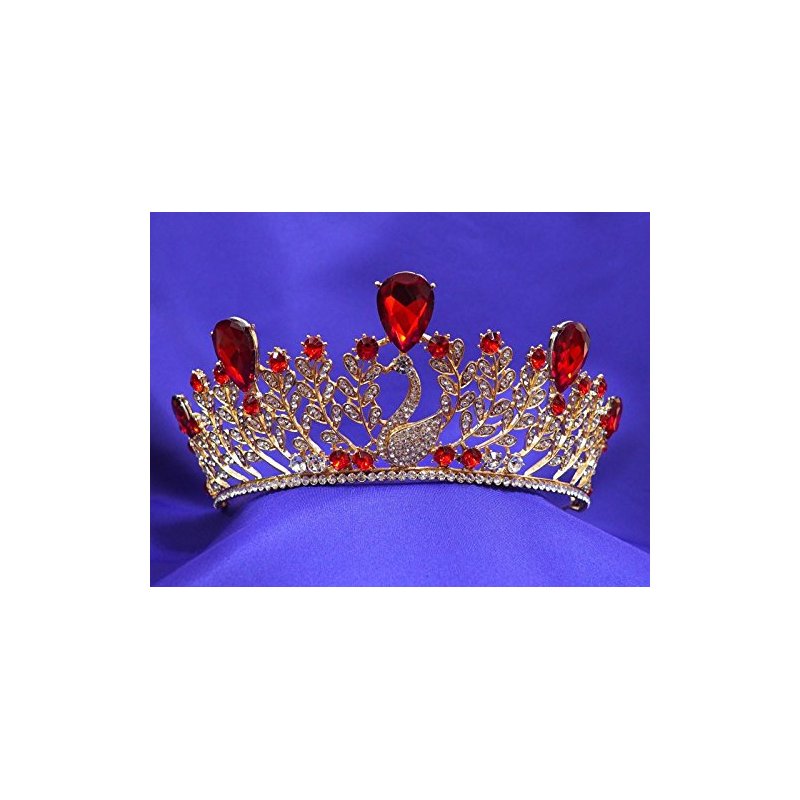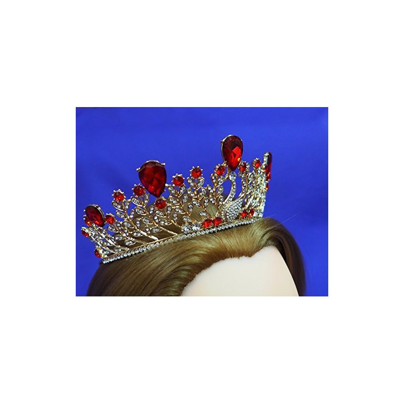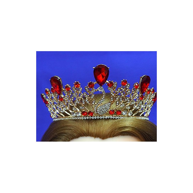 Ruby Red Princess Gold Rhinestone Crystal Swan Wedding Prom Costume Tiara Crown CT51
