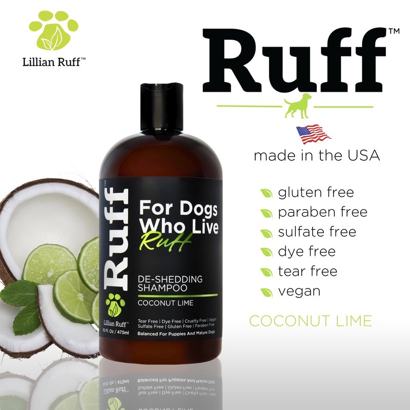 Ruff by Lillian Ruff Deshedding Dog Shampoo | Coconut Lime | Vitamin E, Omega-3, Aloe & Coconut Oil | Relieves Shedding, Itching & Hot Spots | Moisturizing & Deodorizing | Safe for Puppies | USA Made