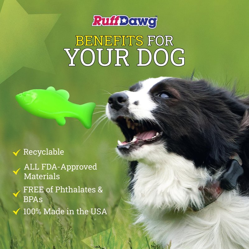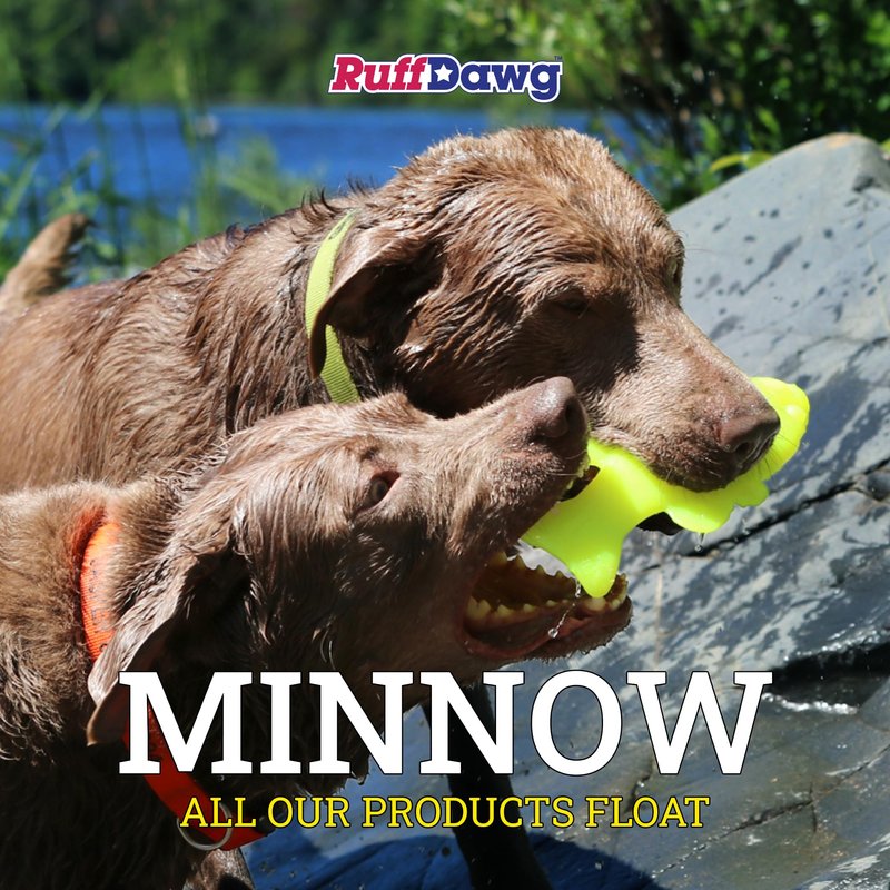 The Ruff Dawg Minnow is the ultimate play companion for dogs that love to fetch, splash, and explore the outdoors. Made from high-quality, ultra-durable rubber, this toy is built to withstand vigorous play and the most energetic chewers, ensuring it can keep up with your dog’s active lifestyle. Its unique fish shape and lightweight design make it perfect for long-distance throws, adding excitement to every game of fetch. What sets the Minnow apart is its ability to float, allowing water-loving dogs to enjoy fetch sessions at the pool, lake, or beach without losing sight of their favorite toy. The bright neon colors ensure visibility, so your dog or you can easily spot it, even in open spaces or on the water’s surface. Proudly made in the USA, the Minnow reflects Ruff Dawg’s dedication to creating safe, high-quality toys that bring joy to dogs and peace of mind to owners. Ideal for dogs of all sizes and activity levels, this versatile toy delivers endless fun, helping to keep your dog engaged, active, and mentally stimulated. Whether your dog loves to chase, splash, or chew, the Ruff Dawg Minnow provides an unmatched play experience, combining durability, safety, and excitement in one fantastic toy.
