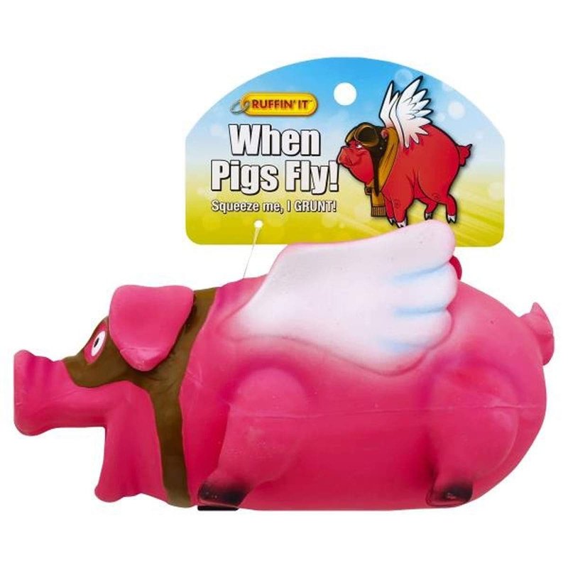 Ruffin' It 80542 When Pig's Fly Dog Toy with Squeaker, Flying Pig, Pink