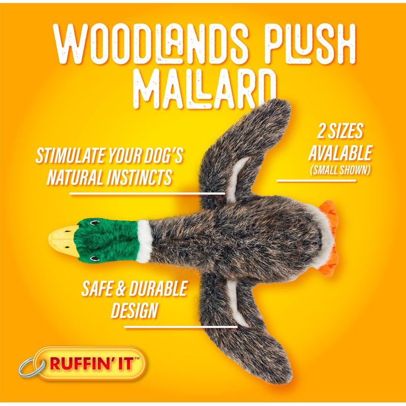 - PLUSH DOG TOY - The Ruffin' It Woodlands Plush Mallard will quickly become your dog's best pal. The design of this realistic-looking feathered friend is inspired by your pup's inner wild side and natural instinct to play.