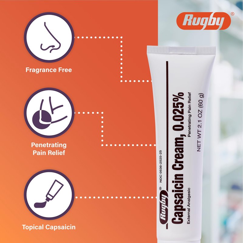 - TOPICAL CAPSAICIN: Introducing Rugby Capsaicin 0.025% Cream, a trusted and reliable capsaicin cream for topical use.