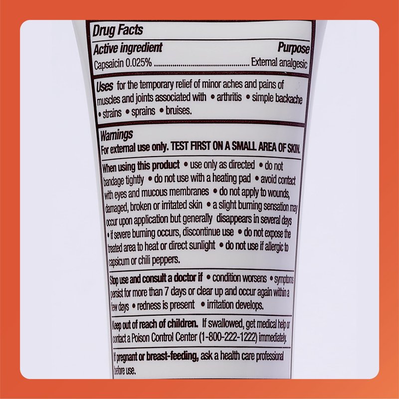 - PROVEN FORMULA: This cream's active ingredient is capsaicin, the natural substance found in hot chili peppers. It helps provide penetrating pain relief.