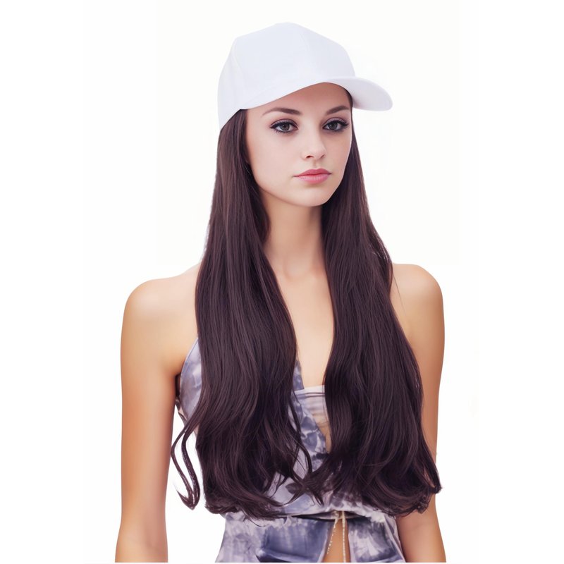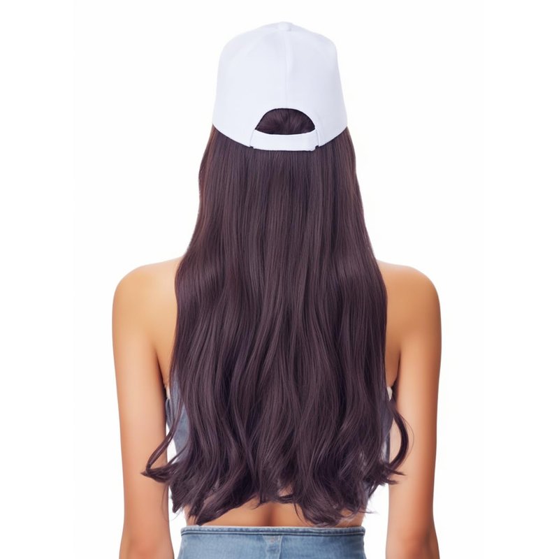Rugelyss Hat Wig for Women Long Wavy Baseball Cap Wig with Curly Hair Extensions Synthetic Rednish Brown Wig Adjustable White Baseball Hat