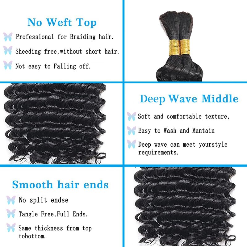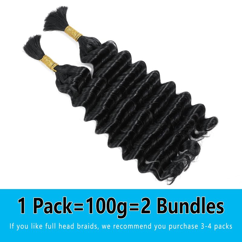 About The Human Braiding Hair -- Hair Material: 100% Unprocessed Brazilian Virgin Human braiding hair -- Brazilian Virgin Hair Deep Bulk Human Hair Braiding Hair for Boho Knotless Braids -- Weight:100g=2 Bundle=1Pack -- Natural Black Color,can be bleached, dyed, permed and styled; -- there is no weft.Especially suitable for braiding .Such as bohemian braids, knotless braids, box braids, cornrows, and twists. You can also use it to create hair extensions that add length and volume to your natural hair.