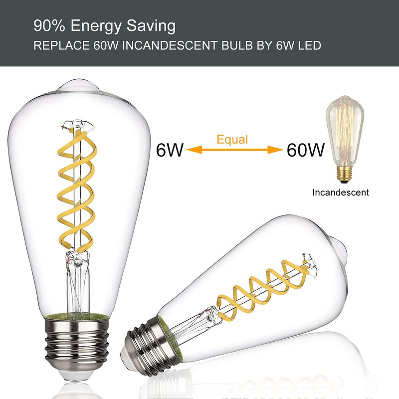 - 【Economical & Energy Saving】Up to 90% saving on your electricity bill, replacing traditional 60W incandescent with 6W LED, costing less and reducing re-lamp replacement frequency. The design life is approximately 25,000 hours of life on average. At 5 hours of use per day you'll get over 10 years in lifespan. No longer need to replace the vintage led bulb frequently.
