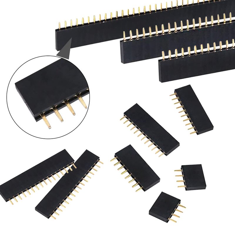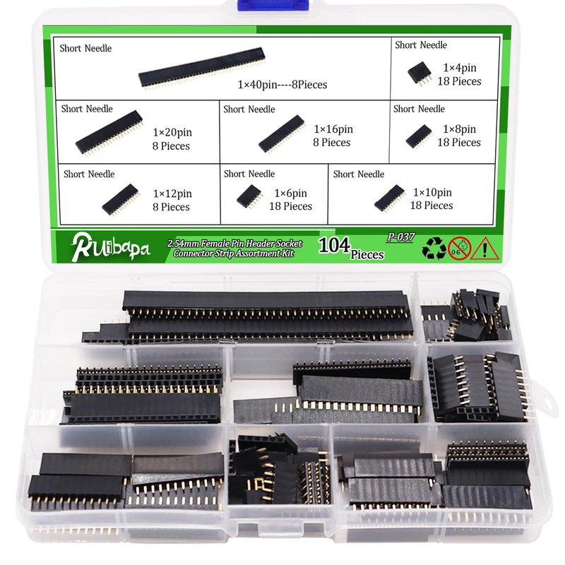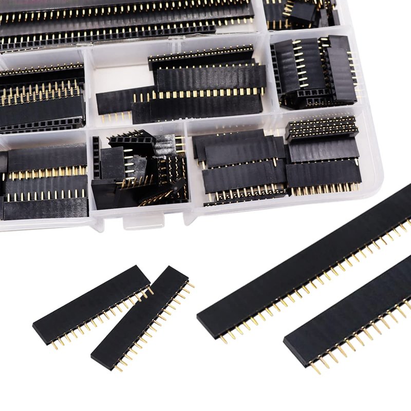 Ruibapa 2.54mm Female Pin Header Socket Connector Strip Assortment Kit Straight Single Row PCB Board Pin Header 4、6、8、10、12、16、20、40Pin P-037