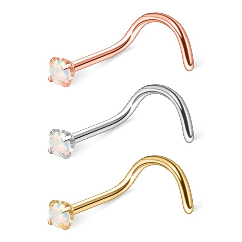 - Package include:3pcs opal nose stud with mix color bar(silver/gold/rose gold,each color one piece), come with one gift velvet bag.