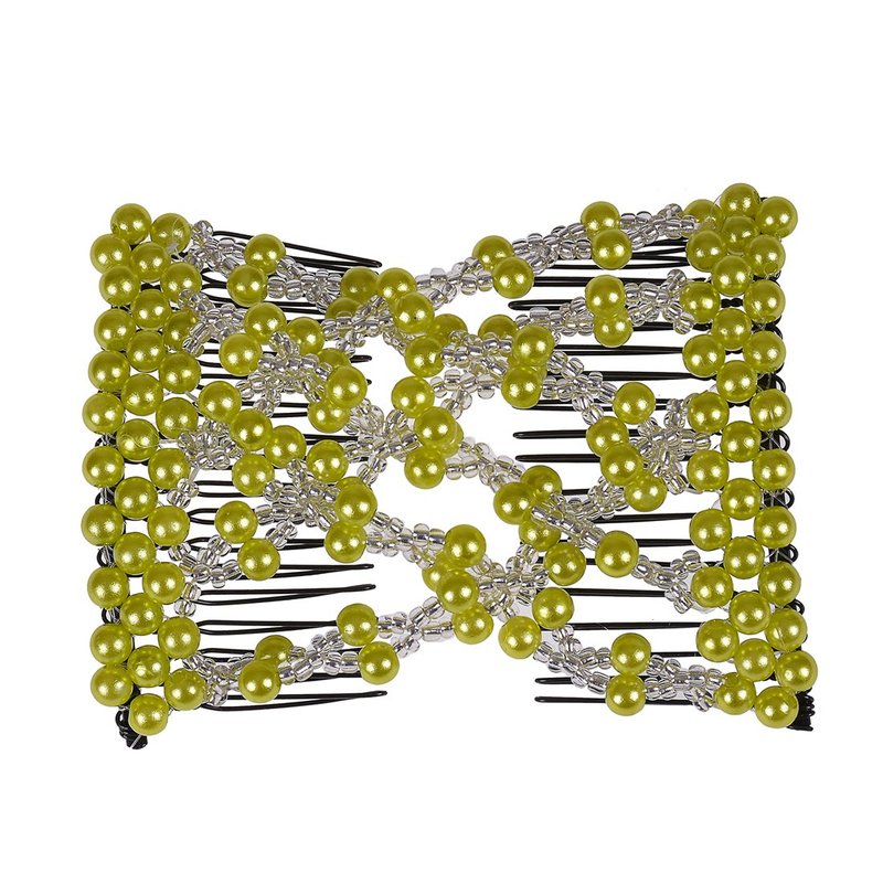 Ruihfas Delicate Women Girls Easy Stretch Pearls Combs Beaded Hair Comb Jewelry Double Clips (Green)