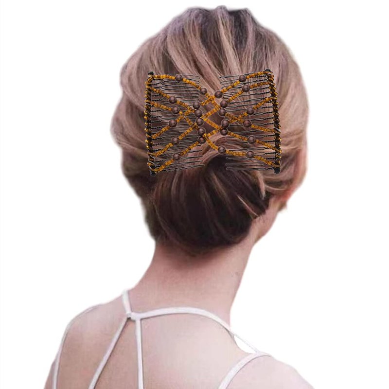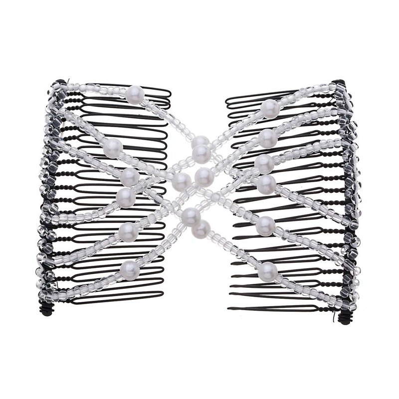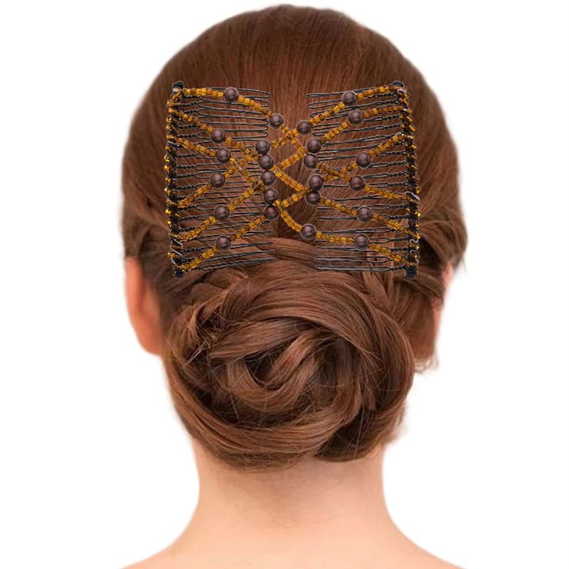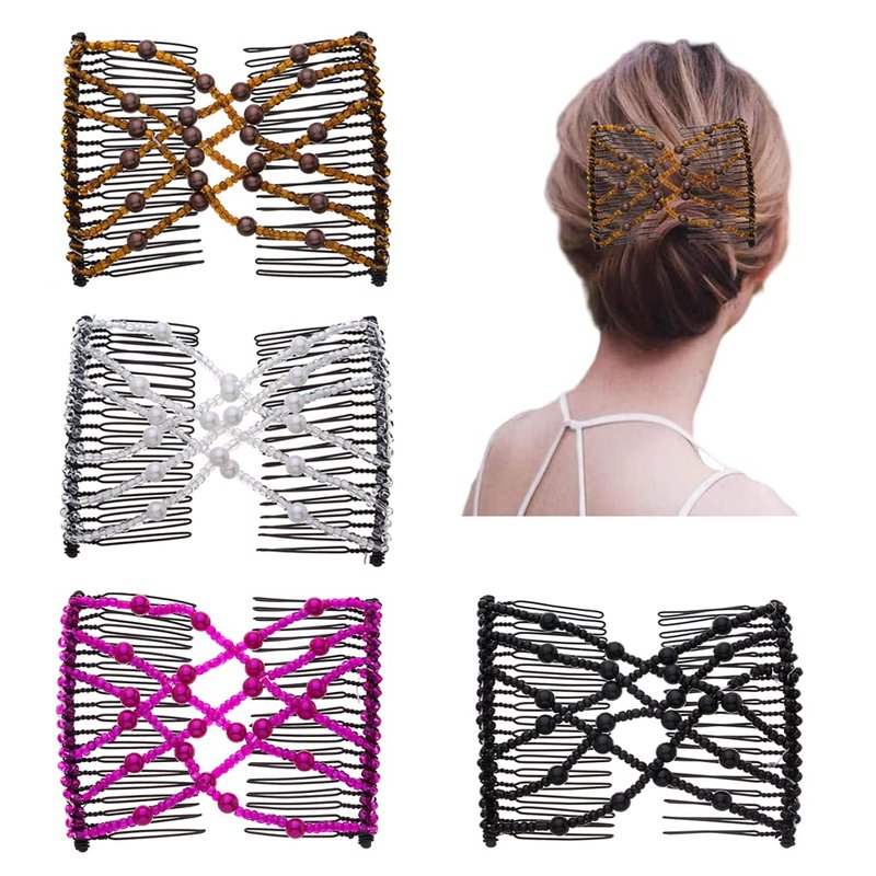 Ruihfas Easy Stretch Comb Beaded Double Stretching Combs DIY Hair Styling Accessories for Women Girls Hair Bun Maker, Pack of 4