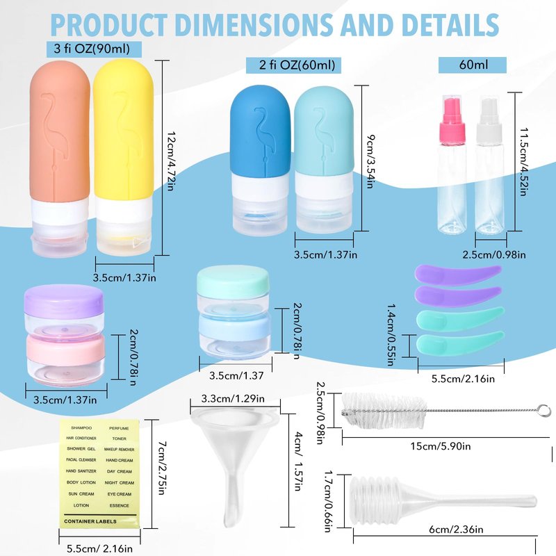 - ★★★Perfect Design: The travel size container features a 3-layer leak-proof design with a wide opening, the 3-layer leak-proof design with a sturdy flip-top lid and no-drip valve protects your bottles from spills, leaks during transportation Or dripping. The wide opening design allows for easy filling of lotion, shampoo and conditioner. Simply unscrew the top cap and fill the holes with liquid. Plus, when it’s time to clean up, the plastic ring can be easily removed and the brush allows for bette