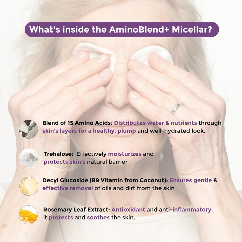 - AMINOBLEND + MICELLAR MAKEUP REMOVER: Removes makeup, cleanses and nurtures your skin while respecting the skin's optimal pH level and providing protection to the skin's natural barrier.