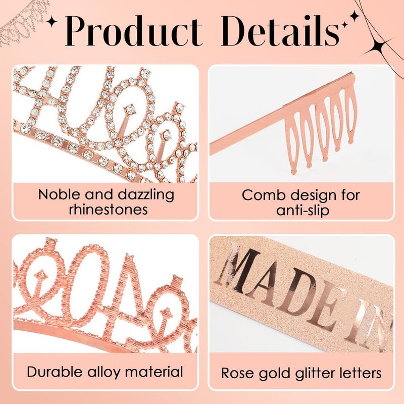 - 【Durable Material】The rose gold 40th birthday crown in our set is made of rhinestones and alloy, which is sparkling and durable. The birthday sash is made of fabric and features "Made in 1984" in sparkling rose gold.