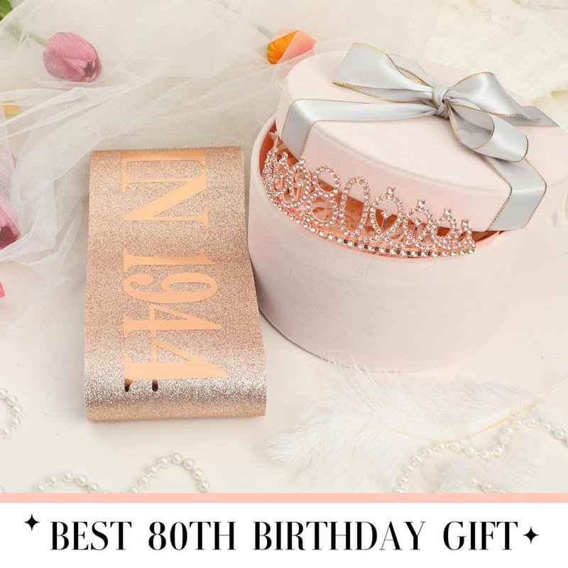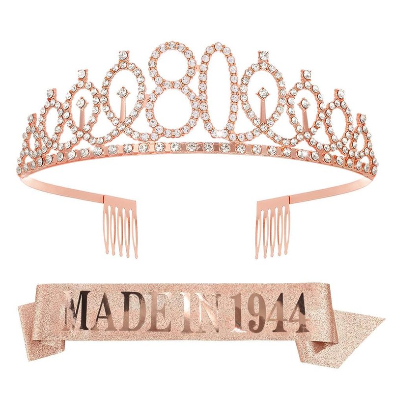 - 【80th Birthday Decorations】It's your special day, be the queen of your 80th birthday party with the rose gold 80th birthday rhinestone tiara and sash.The rose gold birthday accessories will make you the most eye-catching star of the party.
