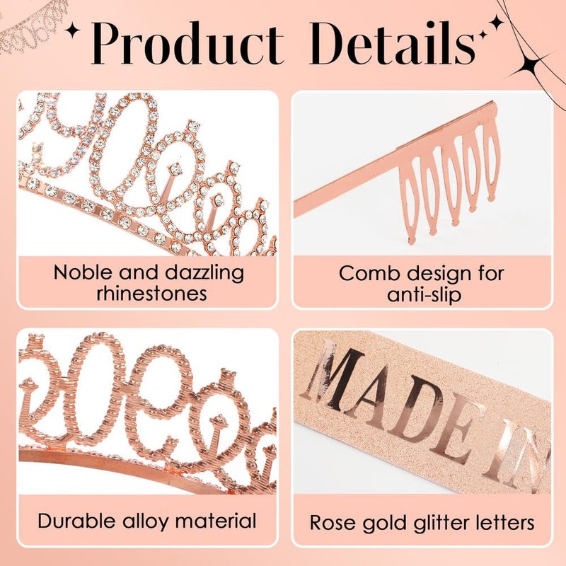 - 【Durable Material】The rose gold 90th birthday crown in our set is made of rhinestones and alloy, which is sparkling and durable. The birthday sash is made of fabric and features "Made in 1934" in sparkling rose gold.