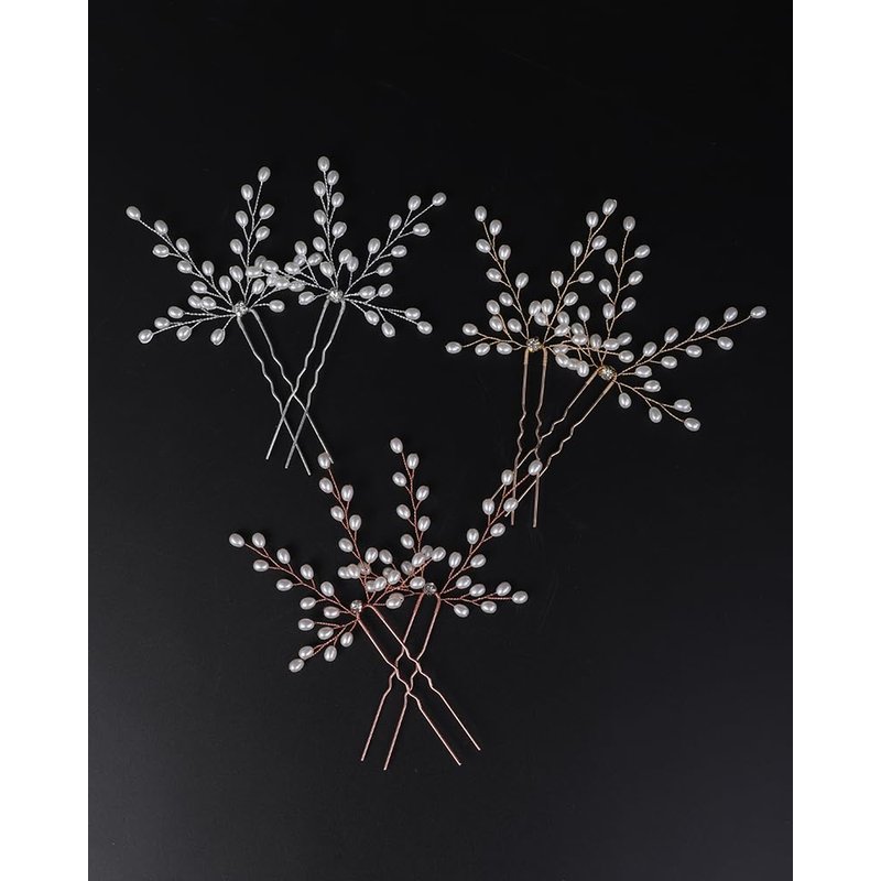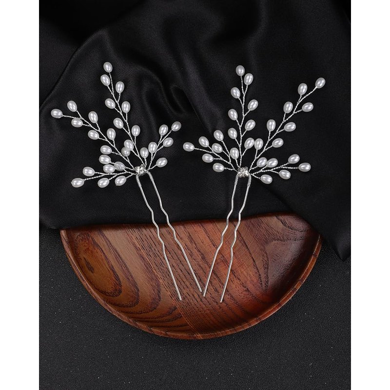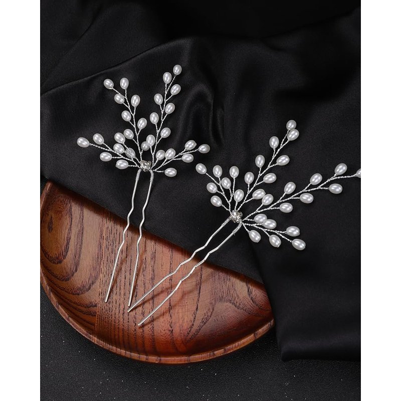 Rumtock 3pcs Pearl Beads Silver Hair Piece for Women Girls Wedding Bridal Hair Accessories for Styling Boho Banquet (Silver)