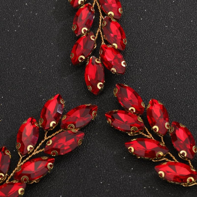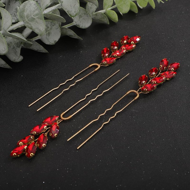 Rumtock 3pcs Vintage Red Crystal Beads Gold Hair Pins for Women Girls Wedding Bridal Vintage Hair Styling Jewelry (Red)