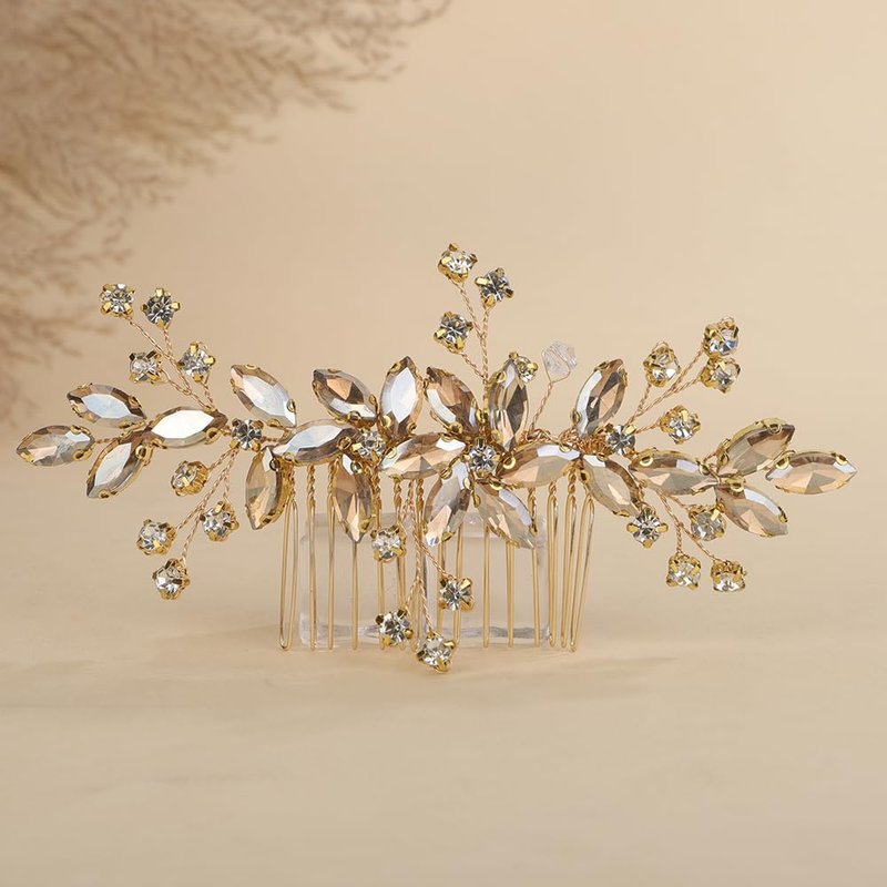 Rumtock Champagne Crystal Gold Hair Comb for Women Wedding Bridal Hair Piece Handmade Side Headpiece with Rhinestones (Champagne)