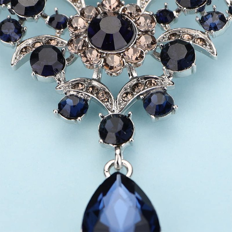 Rumtock Dark Blue Rhinestones Elegant Silver Brooch for Women Girls Spark Jewelry Prom Dancing Ball