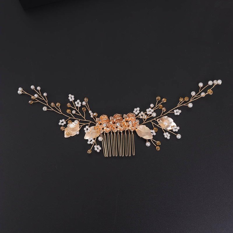 Rumtock Gold Flower Long Chain Hair Comb with Pearl Beads Bohemian Vintage Hair Styling Jewelry for Women Girls