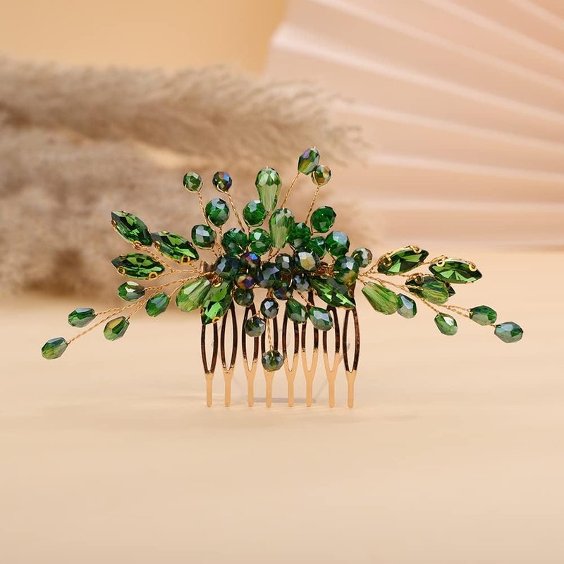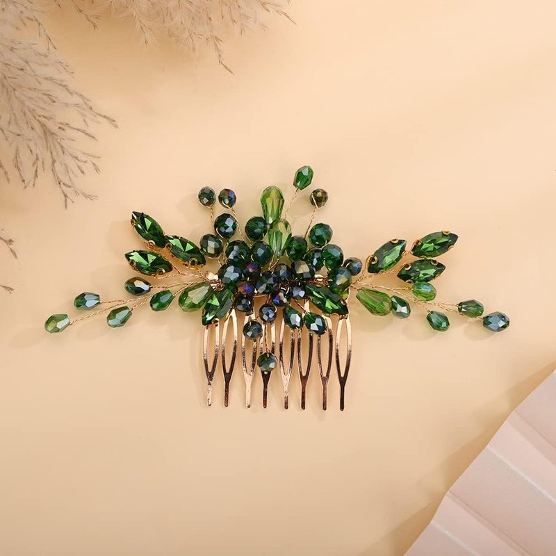 Rumtock Green Rhinestones Beads Gold Hair Comb Side Headpiece for Wedding Brides Women Girls Handmade Hair Accessories (Green)