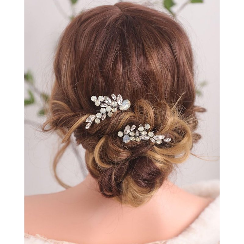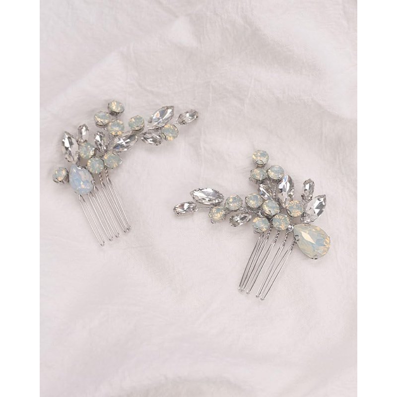 Rumtock Opal Crystal Beads Silver Hair Comb Set for Wedding Brides Women Hair Accessories Handmade Hair Jewelry