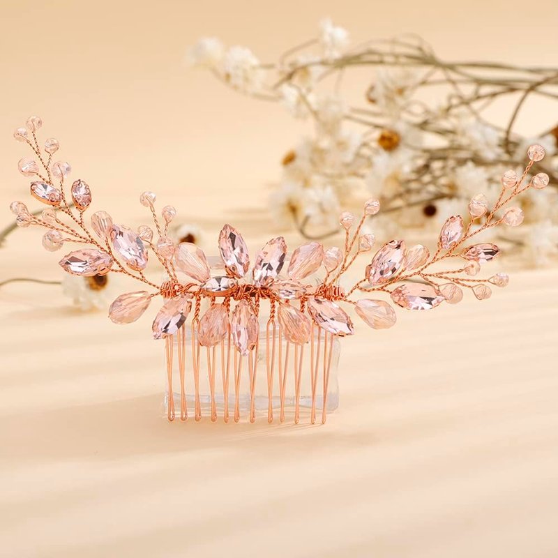 Rumtock Pink Rhinestones Beads Long Hair Comb for Wedding Brides Women Girls Handmade Hair Piece Vintage Handmade Jewelry for Banquet Prom (Pink)