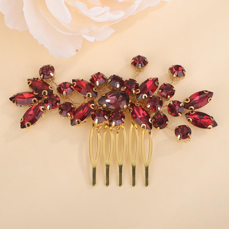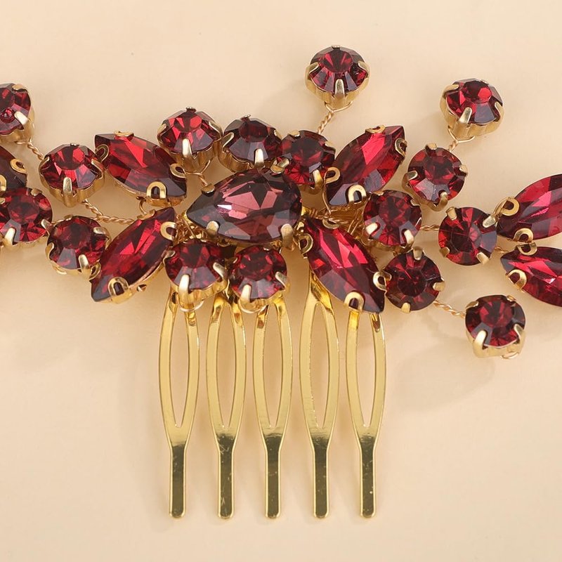 Rumtock Red Rhinestones Beads Gold Hair Comb for Wedding Brides Women Girls Sparkle Handmade Hair Jewelry Prom Banquet (Red)