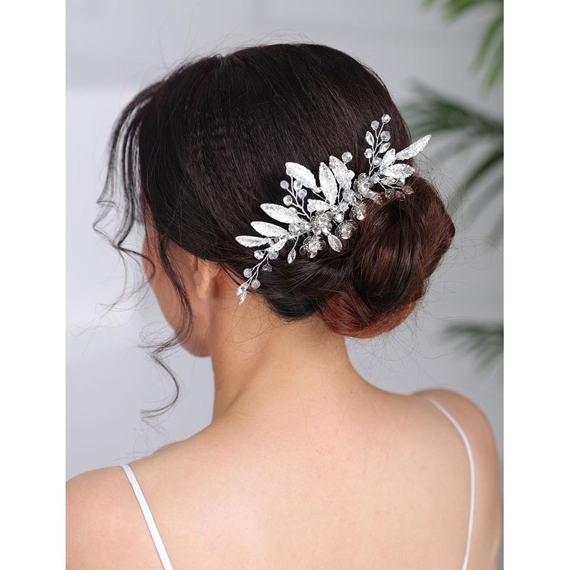 Rumtock Silver Leaf Hair Comb for Brides Boho Handmade Hair Accessories Women Special Occasion Jewelry